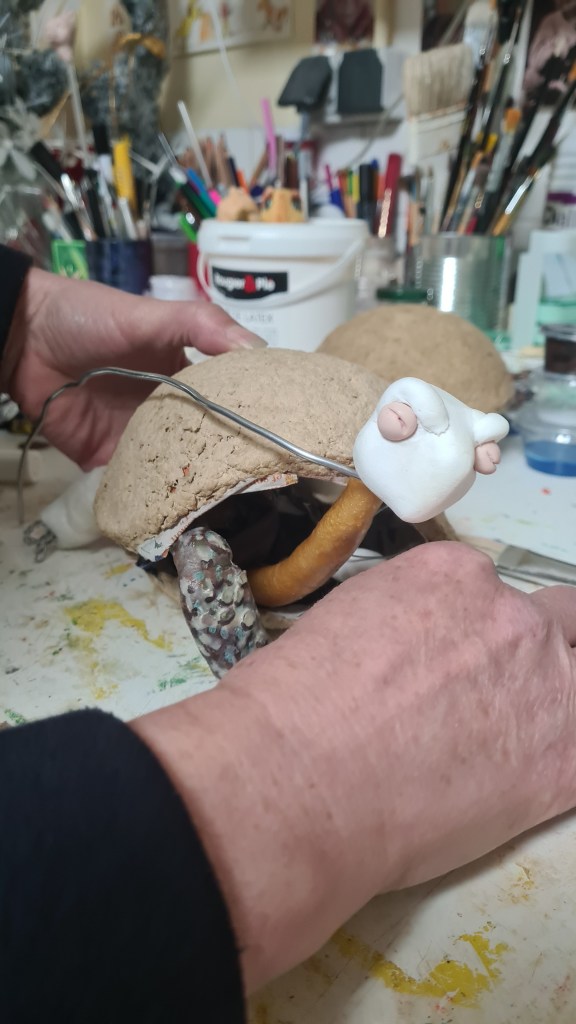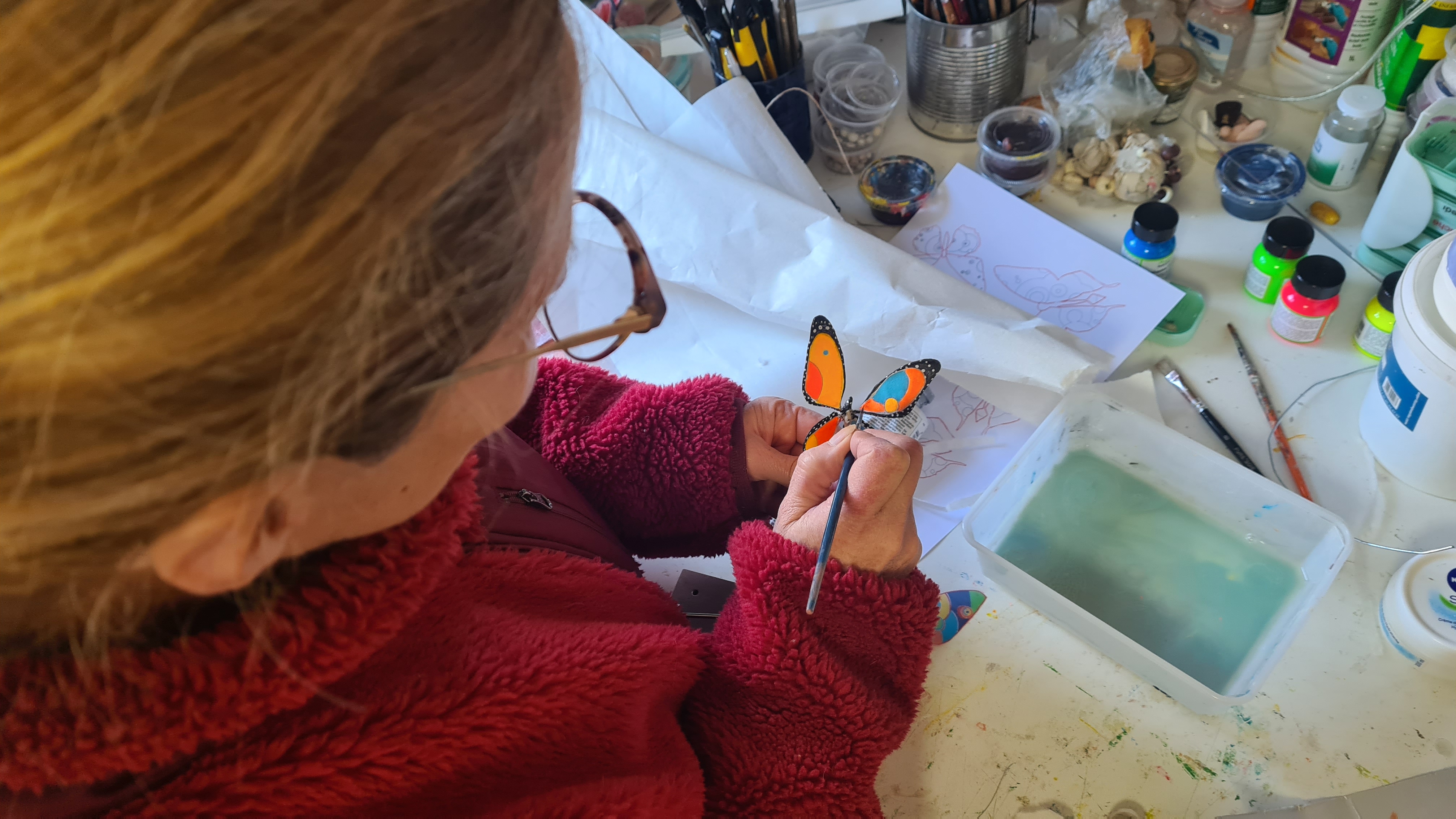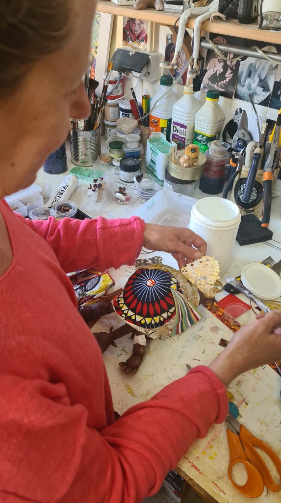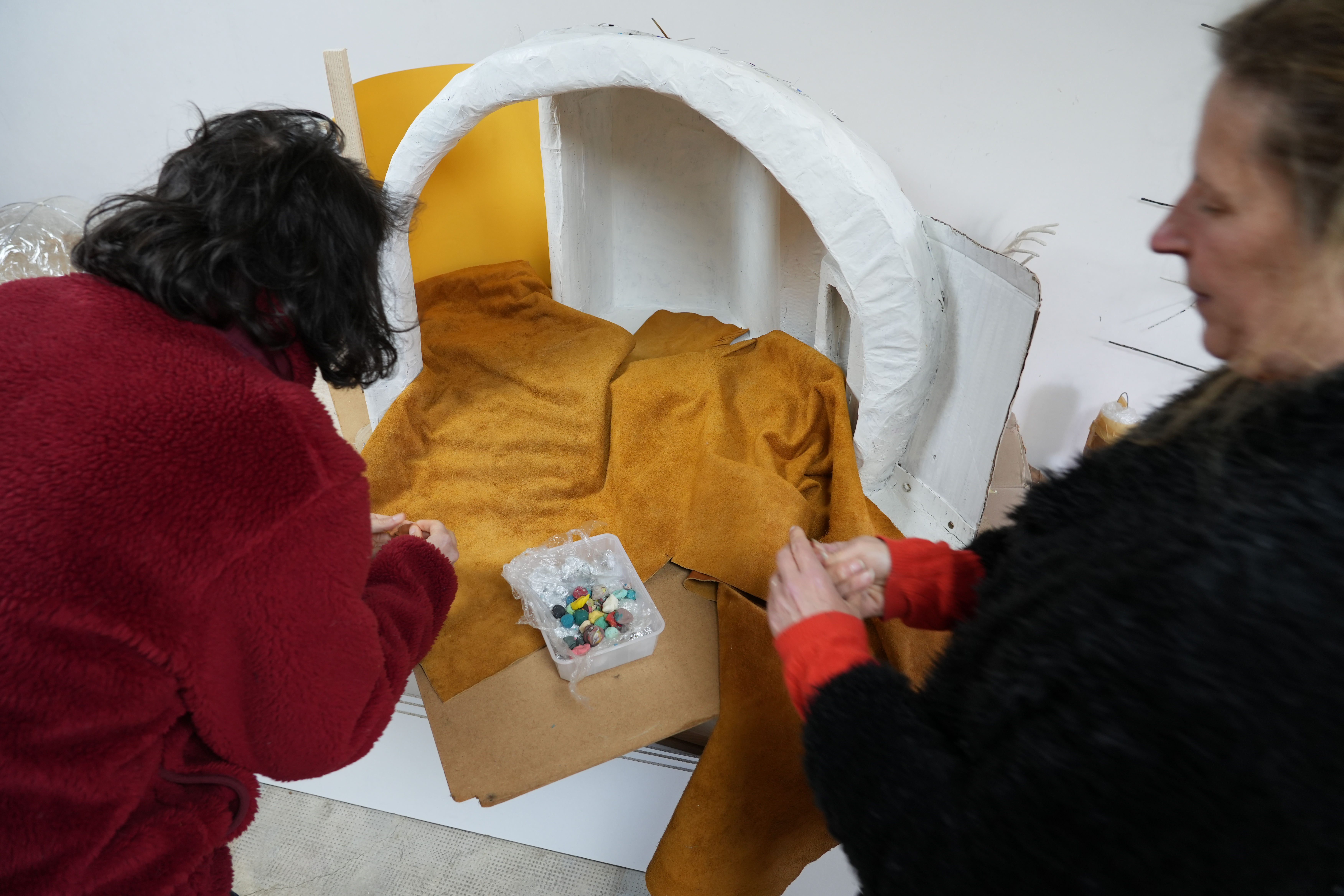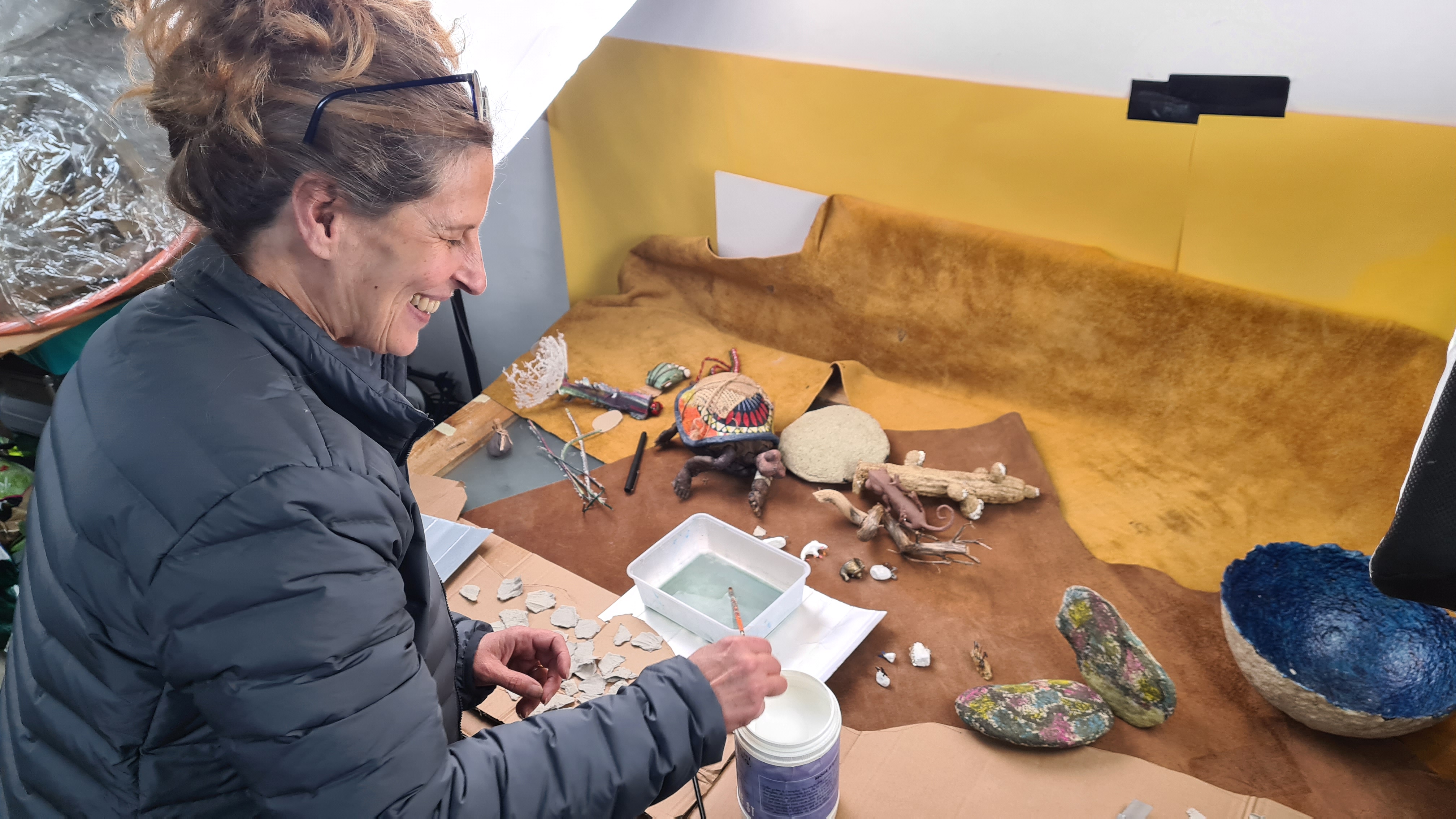 Papiers, cartons, mousse, boite d’oeufs, perles, boutons, peau en cuir, daim, sable … un point d’honneur à été donné sur la réutilisation de matériaux.